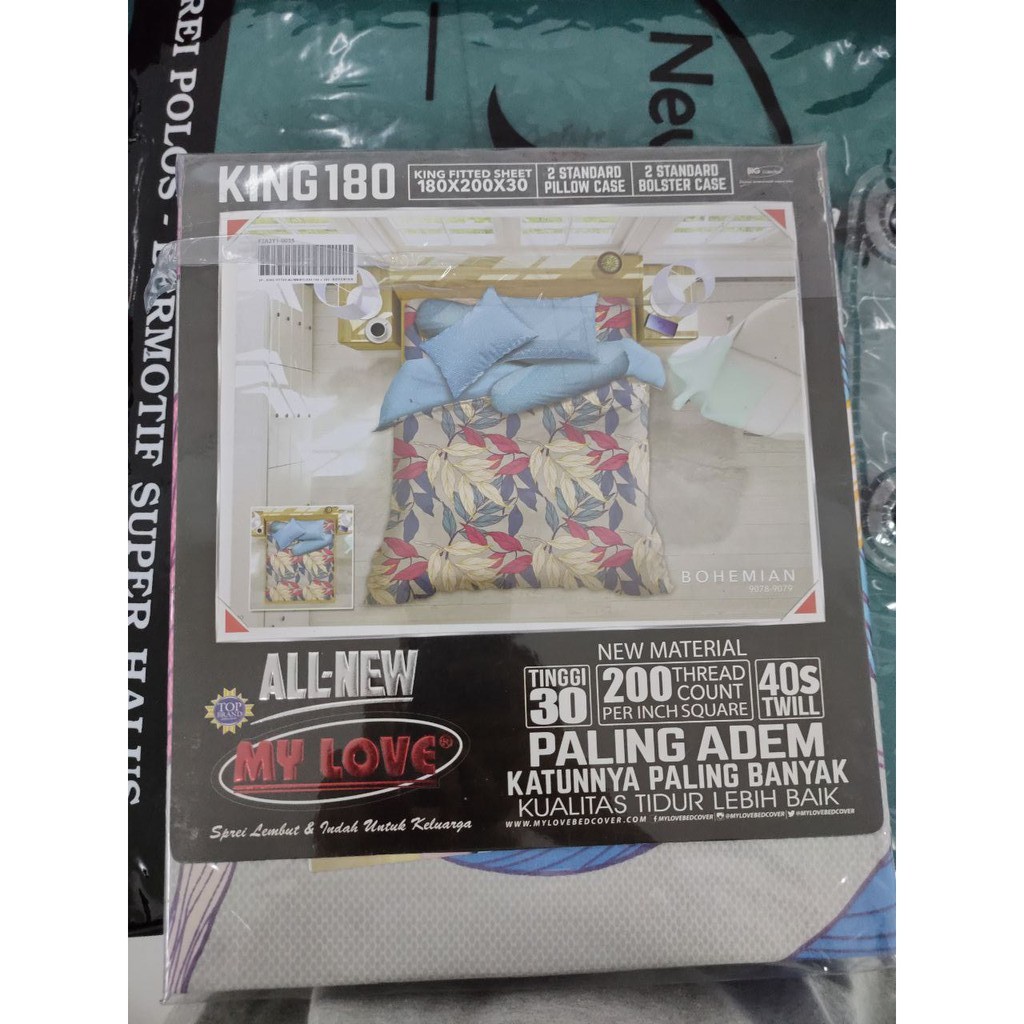 •Kelengkapan Paket :1 Sprei Fitted/Karet - TIDAK RUMBAI, 2 pcs Sarung bantal, 2pcs Sarung Guling•Material :50% Cotton50% Polyester200 thread counth per square inch•Merk :All New My Love"Berat :1.45 kg•Jenis :Sprei King Fitted (180 x 200)•Size :180x200x30•keunggulan Produk MyLove1. Design motif mewah dan bervariatif cocok untuk mempercantik ruang tidur.2. Kualitas kain yang halus dan lembut, tidak berbulu untuk meningkatkan kualitas tidur.3. Tersedia beragam produk pilihan Sprei dan Bed Cover4. Bed Cover diproses menggunakan sistem Komputer Quilting.SPREI KING ALL NEW MY LOVE FITTED 180X200 BOHEMIANDeskripsi SPREI KING ALL NEW MY LOVE FITTED 180X200Sprei ukuran King Fitted dari BIG COLLECTION yang legendaris dan terkenal lebih adem dan lembut kini hadir semakin baik dengan beberapa upgrade. 200 threat count/inch, cotton terbanyak di kelasnya dan tinggi sprei 30cm menjadikan ALL NEW MY LOVE terbaik dikelasnya. -Untuk menciptakan Kenyamanan tidur anda dan Kualitas tidur yang lebih b