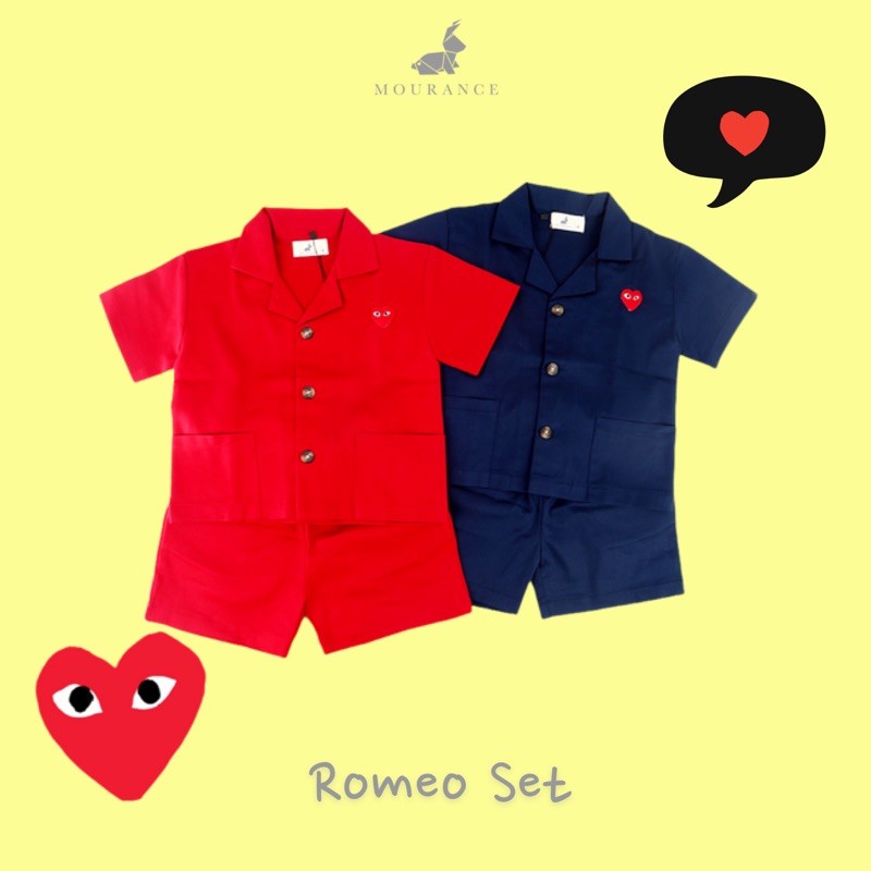 ROMEO Shirt Set kali ini Mourance keluarin lagi outfit buat boy ya mom.. sudah satu set loh atasan sama bawahan.ini aslinya bagus ya mom, cuttingnya super rapi.. warnanya juga bagus cerah banget di pakai anak.ini bisa dipakai berbagai acara dan bisa buat hangout santai juga karena bahan bener oke ya mom.. bahan seperti juliet material fabric canvas strech, mom pasti bakalan falling in love banget sama style ini.available 2 color RED & NAVYSizechart :S 2-3year PB 36 LD 67M 3-4year PB 38 LD 70L 4-5year PB 41 LD 75XL 5-6year PB 44
