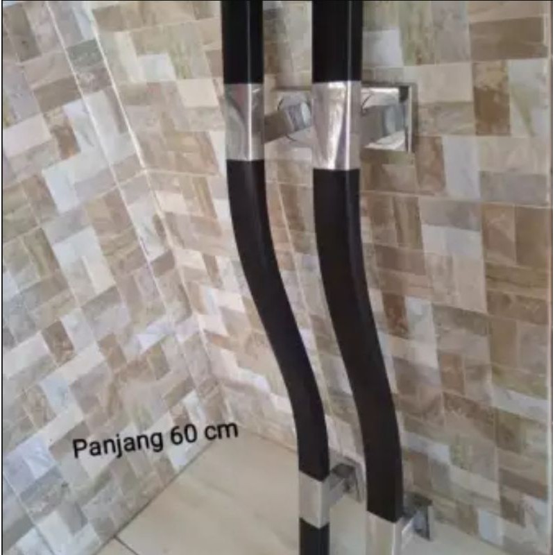 Harga barang ini per 1 pasang atau bisa disebut per 2 bijiBayar 120 rb dapat 2 bijiBelum ongkirhandle pintu rumah kobra 60 cm kotak es tarikan pintu gagang pintu kunci pintuBahan handle Kotak 15 x 30 mm stainless 304Ketebalan 1mmPanjang 60 cmBahan kaki cagak kotak 2 x 2 cm dari stainless 304 Ketebalan 1 mmBahan lepek sepatu kakiAtas nya dr stainless blenden atau baja putihBawahnya plat besi tebal digalvanisBerat efektif per pasang 1,5kgPlus paku skrup 16 bjFinishingnya handle cet epoxy hitam black minim