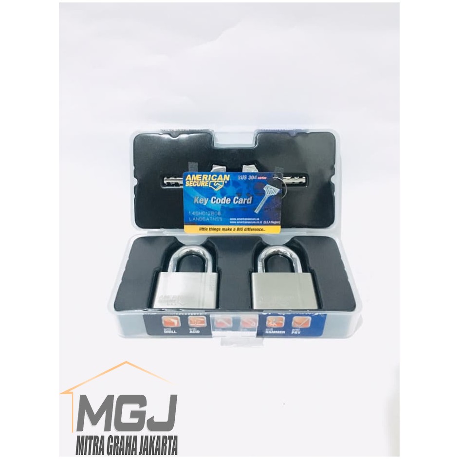 Selamat datang di Mitra Graha Jakarta...Model tipe 2019Grade 9+ (Plus)Gembok American Secure anti ACID / CAIRAN SETAN anti Potong anti maling 60mmleher Pendek isi 2pcs KEY ALIKE, SATU KUNCI bisa utk 2gembok, GOOD QUALITYKualitas Bagus dengan menggunakan Stanles 304 ORIGINALDemo bisa lihat di YouTube Test American secure padlock 2nd generation Anak kunci dapat 4pcsAnak kunci terbuat dari STAINLESS Anti drillAnti acid/Cairan setanAnti hexkeyAnti sawAnti hammerAnti pryAnti fireKey code card harap disimpan utk klaim pembuatan anak kunci jika anak kuncinyahilangGaransi 3bulan, garansi berlaku apabila kerusakan dari produk gembok tersebutdan bukan berasal dari kerusakan yang diakibatkan dari luar gembok ⠀⠀⠀⠀silakan di order, terimakasih gan...SKU : 3131/11435824291550822