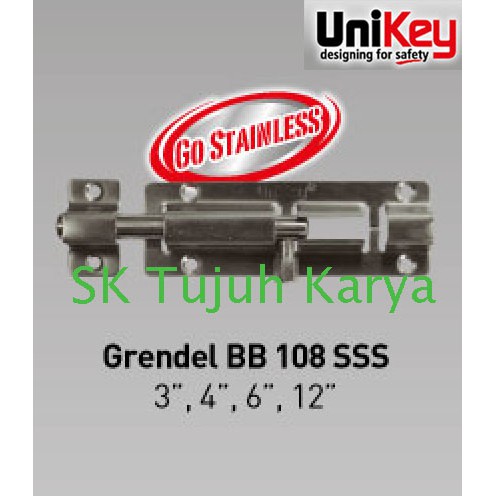 GRANDEL PINTU SLOT PINTU Stainless UniKey BB 108 '6' SSSMerk : UniKeyType : BB 108 SSSMaterial : StainlessKeterangan : Ukuran 6 inchProduk Original UniKeySilakan bertanya apabila ada yang ingin ditanyakan SK7K akan bersedia membantu.Jam Operasional dan PengirimanJam Operasional Admin :Senin - Jumat 09:00 s/d 16:00 WIBSabtu 10:00 s/d 13:00 WIBMinggu dan Hari Libur TutupPengiriman dilakukan di hari yang sama sesuai dengan jam operasional, apabila melewati jam operasional akan dilakukan pengiriman di hari berikutnya.Pemasukan resi pengiriman di lakukan malam h