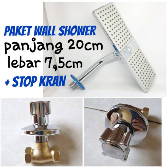 paket wall shower tanam dan stop kran tanam PROMO TERMURAH- wall shower tanam persegi panjang panjang 20cm x lebar 7,5cmberbahan plastik ABS chromepanjang tangkai 15cmsudah dilengkapi tangkai shower dan ring penutup. ukuran drat 1/2.- stop kran tanam kuningan ukuran 1/2