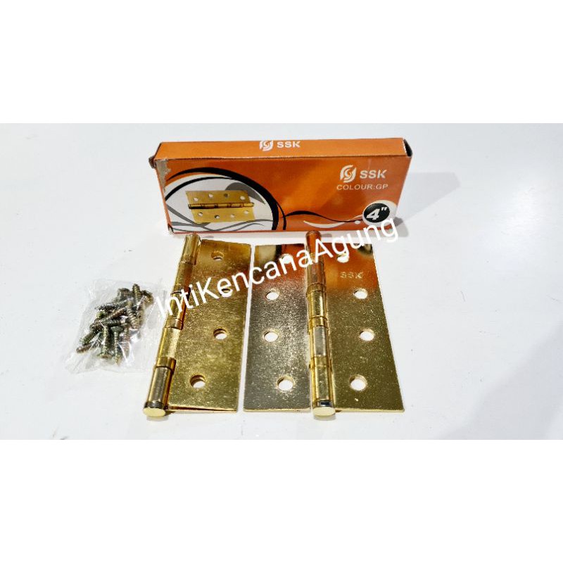 Engsel Pintu Jendela 4" gold Brass Hinges Merk SSK / hppHarga Satu Pasang