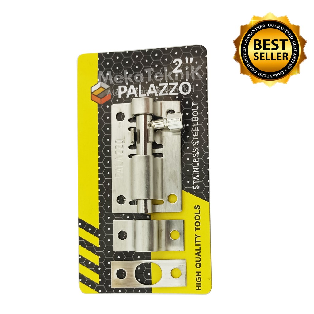 Grendel Pintu / Selot Pintu merk Palazzo :- Ukuran : 2 Inch (5cm)- Merek : Palazzo (Original 100%, Awas Barang Tiruan!!)- Anti karat bahan dari Stainless,- Kuat, Awet, dan Harga Ekonomis.- Sudah Komplit Baut Sekru